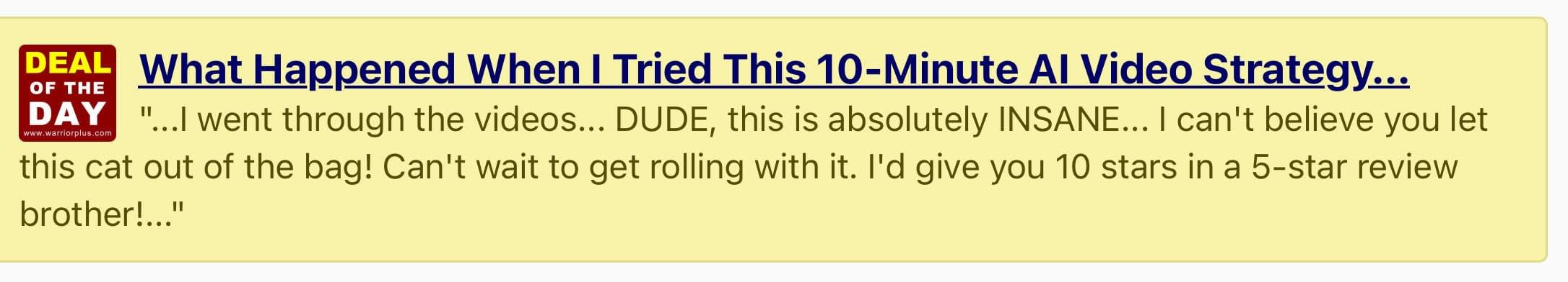 Disclaimer: WarriorPlus is used to help manage the sale of products on this site. While WarriorPlus helps facilitate the sale, all payments are made directly to the product vendor and NOT WarriorPlus. Thus, all product questions, support inquiries and/or refund requests must be sent to the vendor. WarriorPlus's role should not be construed as an endorsement, approval or review of these products or any claim, statement or opinion used in the marketing of these products.